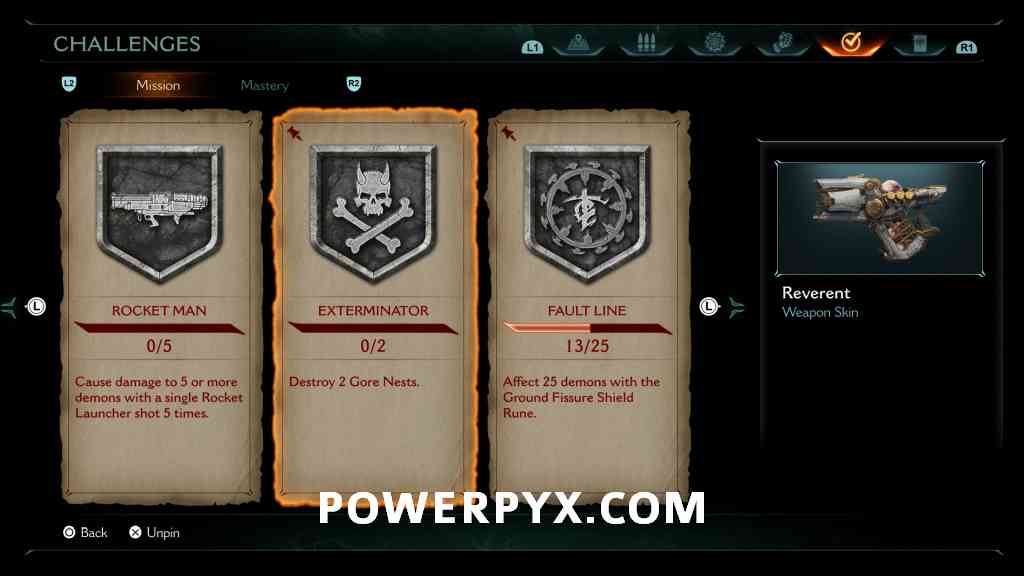 Mission Challenge #2 – Exterminator: Destroy 2 Gore Nests (Reverent – Pulverizer skin reward)