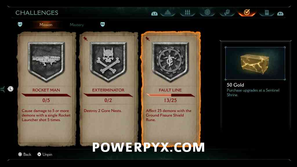 Mission Challenge #1 – Rocket Man: Cause damage to 5 or more demons with a single Rocket Launcher shot 5 times (50 Gold reward)