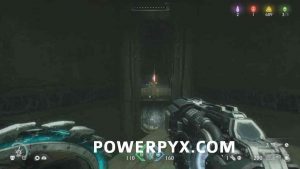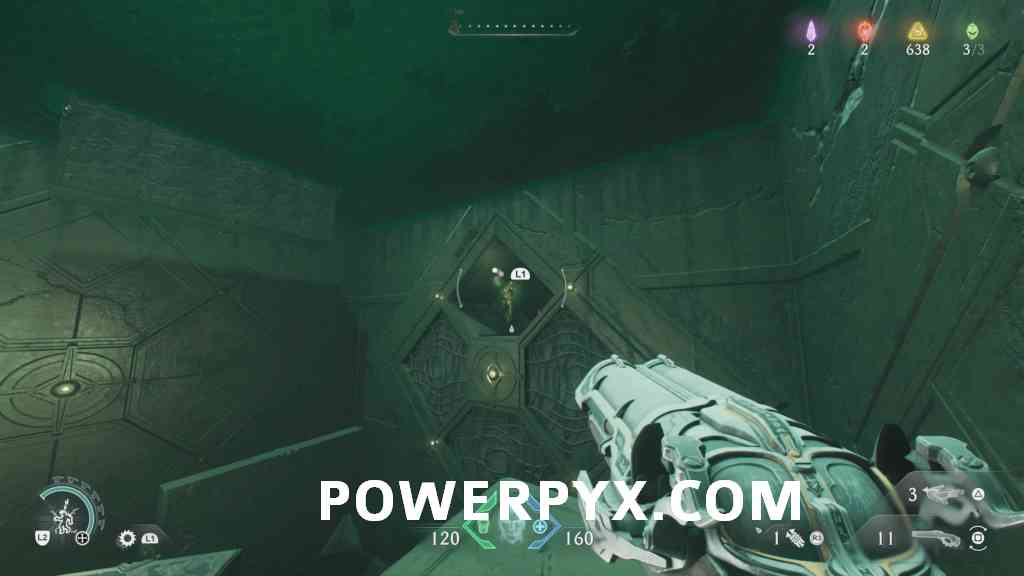 From the start of the mission, go right and jump onto the little platform, turn left and look through the wall, and throw your shield onto the blue eye.