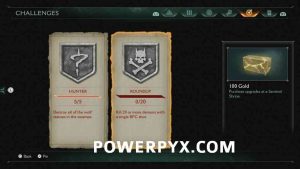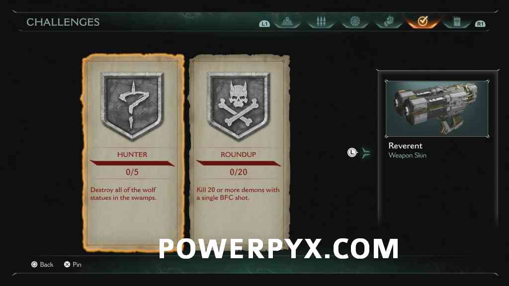 Mission Challenge #1 – Hunter: Destroy all of the wolf statues in the swamps. (Reverent – Super Shotgun skin reward)