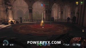 Enter the open doorway just down and to the right of where you entered the corridor. Climb up and smash the chain with your shield, then push the crate, climb up it and follow the path around then drop down to find the secret area and final cultist circle. Just beyond this and down some stairs you will find the codex, go back up the stairs and to the left to find 8 gold (you’ll be ambushed here).
