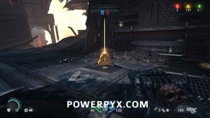 Still on the same hell carrier ship, proceed towards the engine room, once you drop down in front of the engine, turn around to see the gold and codex page behind you.