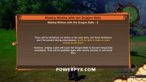 Step 3: After finding all 7 Dragon Balls go to the Pause Menu — Dragon Balls and select your wish (all wishes listed below). Afterward the Dragon Balls are scattered across the world again. But they don’t respawn directly, there is a 20 minute cooldown and you get a notification when they respawned. The game uses actual in-game time played to track this, changing time in your system settings doesn’t work to trick it. The balls will land in different locations than before. It’s random every time where the Dragon Balls will land. Because you can see them marked on the world map they are easy to locate though.