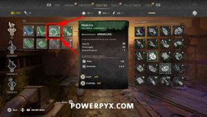 Step 2 (Crafting): Once you have the ingredients, open the Crafting Menu and craft the “Medicine” blueprint. It’s unlocked automatically during the prologue, which teaches you how to do this. Alternatively, you can find Military Medkits around the world, which are rarer but heal you faster.
