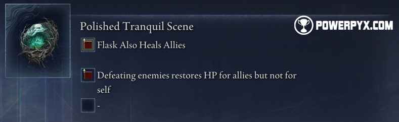 - Flask Also Heals Allies – every time you heal, your teammates also get healed if they’re nearby. This turns everyone into a healer for the whole team! It vastly extends how long your health flasks will last. If all 3 players have a relic with this effect, it greatly enhances your team’s survivability in long boss encounters.