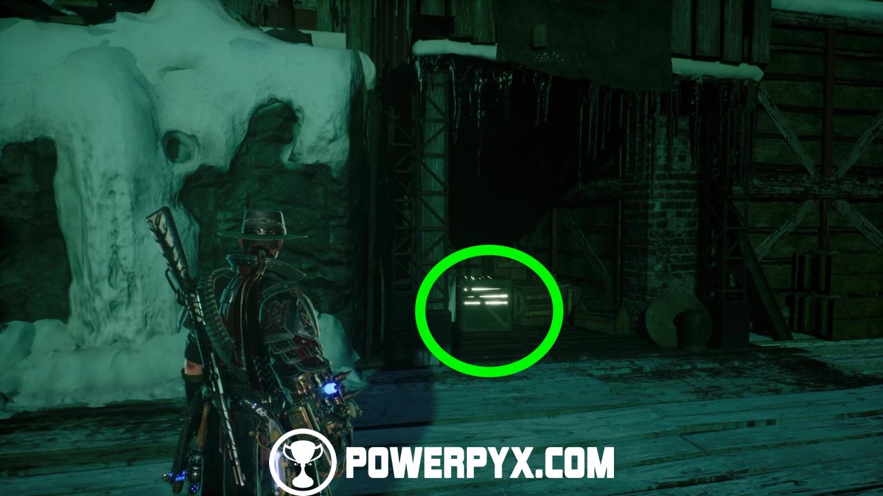 Cash #17 ($ 286): after riding the platform, destroy the chained barricade to find a chest with cash.