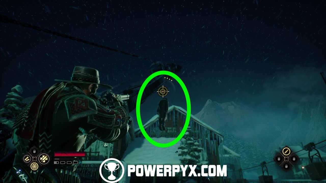 Cash #5 ($ 91): now head through the door and look up for a hanging body to shoot down.