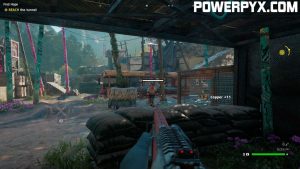 Sadly, we don’t have the binoculars to tag and track the enemies from afar yet. When approaching the bridge, watch out for the sniper on the left side, as he will spot you very easily. Try to find a second where he is turned away and head over on the right side to avoid direct confrontation and take out a few enemies before you most likely will get into trouble at some point.