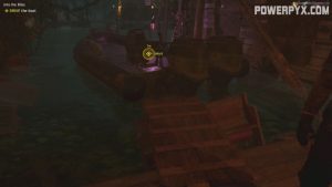 Once the coast is clear, look for another water wheel on the other side of the gate. Once again pull the switch at its base to allow it to spin freely, which will open the gate. Swim back to your boat and continue upriver.