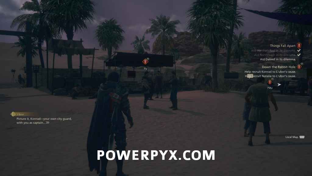 • Quest Info: A recent raid on Dalimil by desert bandits has the town’s residents at odds with how they should deal with future threats. Tensions are hot and L’ubor’s patience is wearing thin, so he taps Clive for a solution.