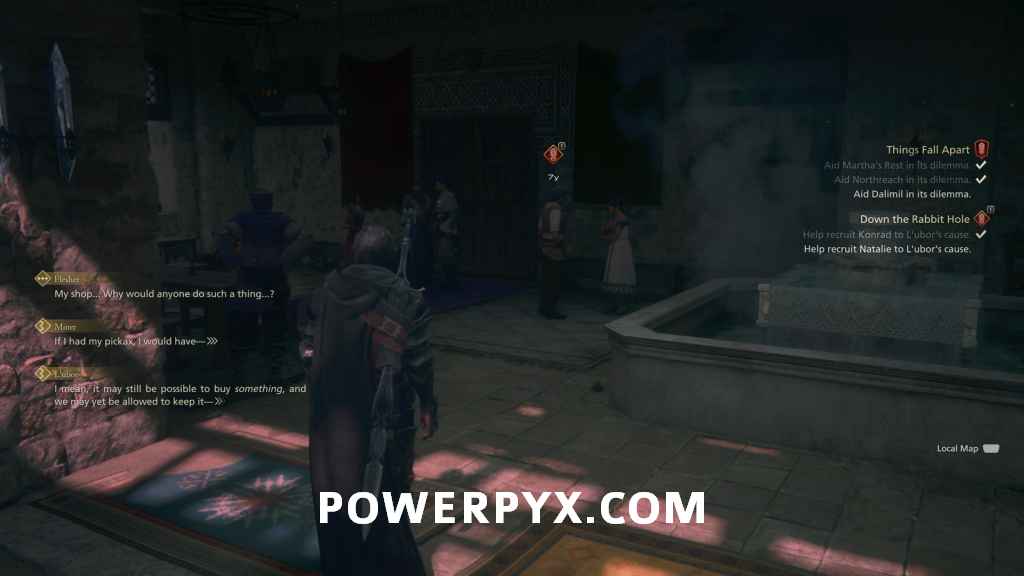 L’ubor needs assistance convincing the townspeople to band together. First, inside the inn to speak with Konrad and Natalie.