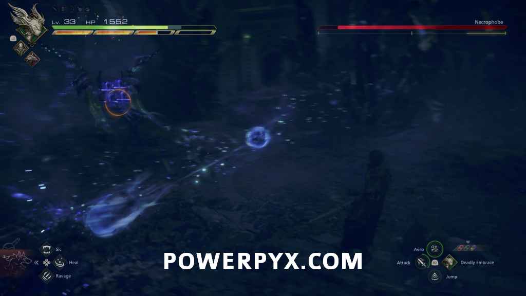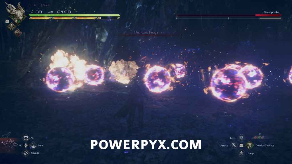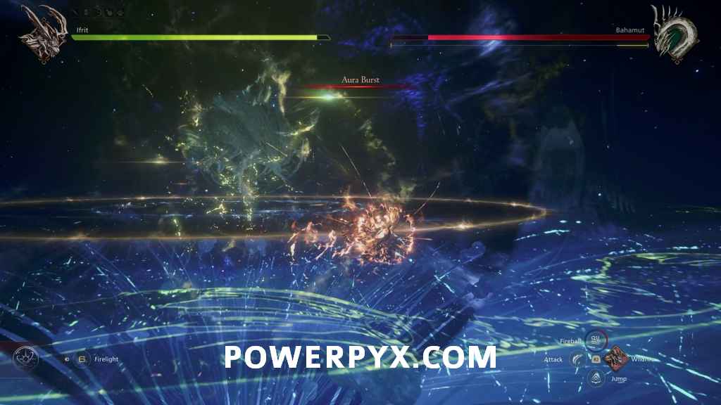 He will then also start performing Aura Burst, which is an area explosion around himself. Use Wildfire with :o: to quickly dodge out of the area.