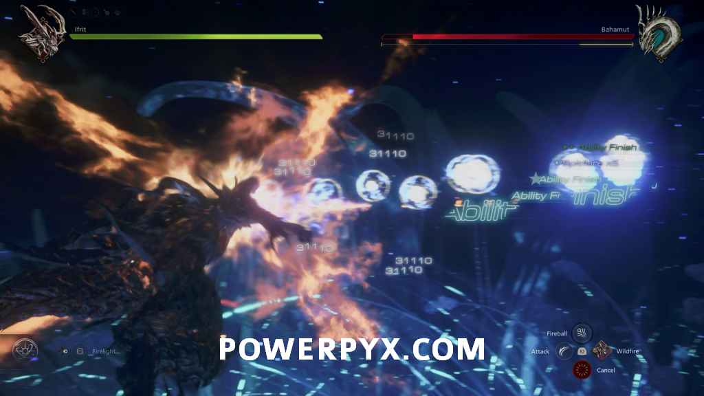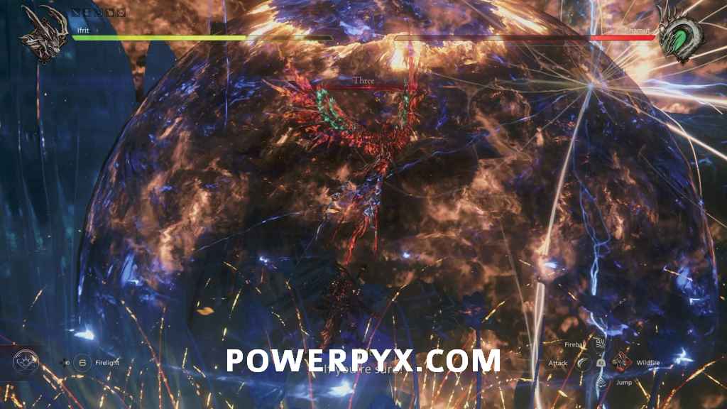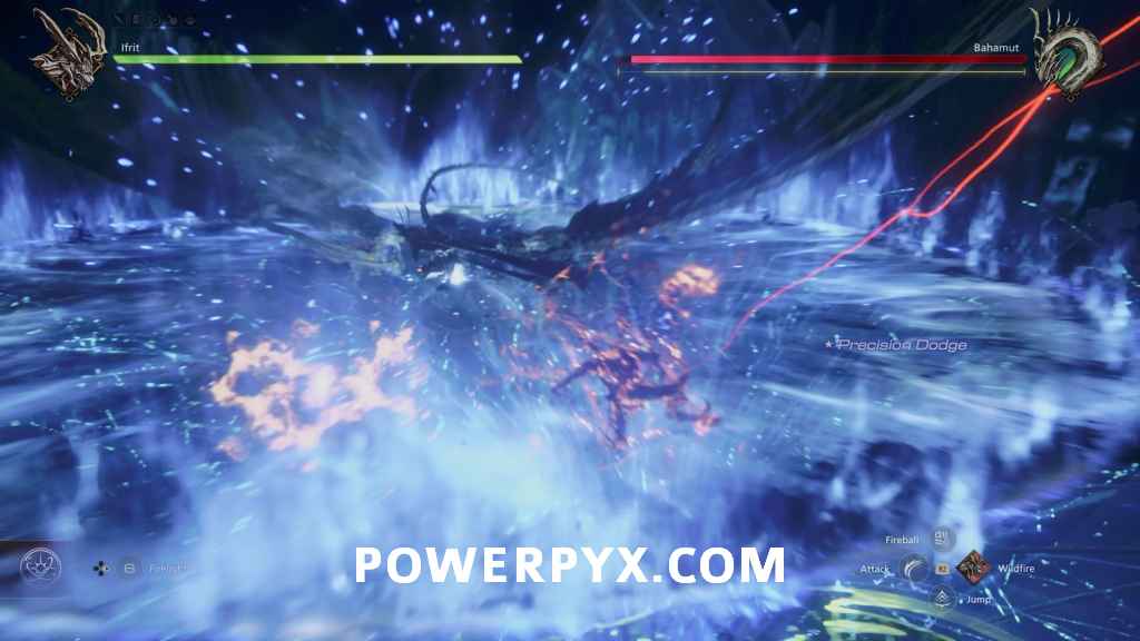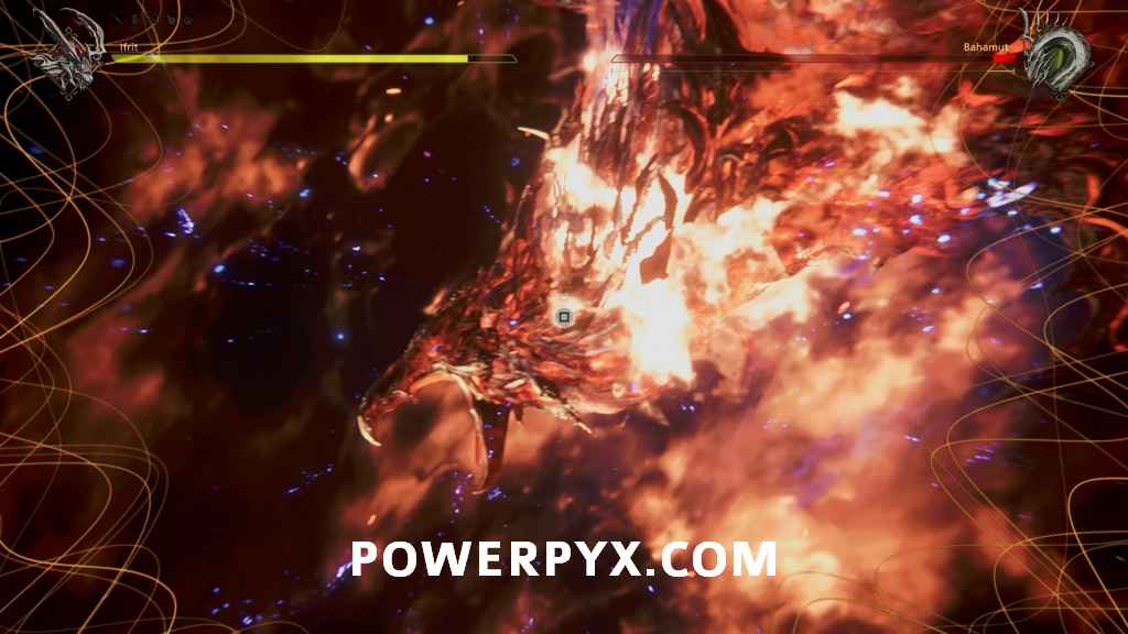 After destroying the orbs there will be a scene, and you will return to playing as Ifrit. This functions the same as the first part, though Bahamut has a couple of new attacks. The first is called Mortal Coil, where he shoots an orb that causes a damaging pillar. Later on he’ll do the same thing, but three in a row called Triple Coil that you need to avoid.