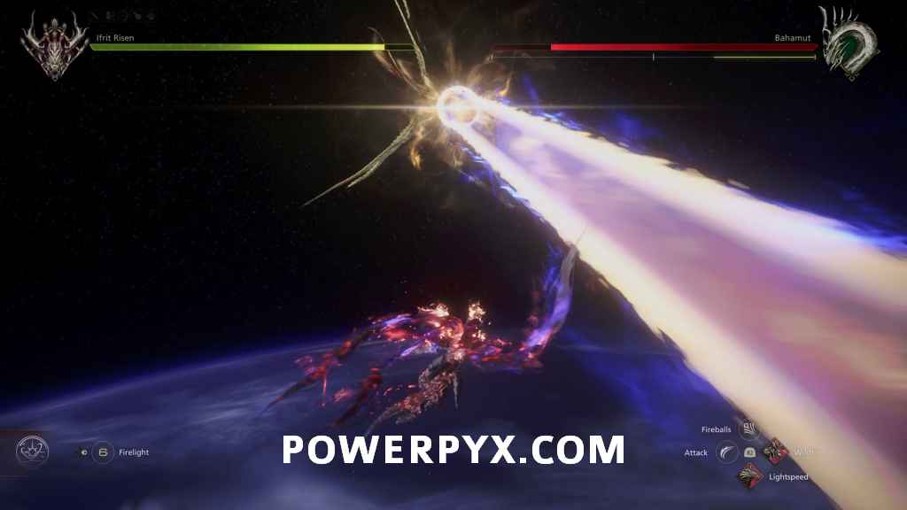 After some scenes, you are now in space. There will be a Cinematic Strike immediately before the normal combat. This section is closer to the prior Ifrit combat in that you should be aggressive and try to melee Bahamut, as you are both effectively flying. The new ability Lightspeed allows you to immediately warp towards the boss with :x: , so use this whenever you need to close the gap to them. Note that you ONLY move toward the boss with this, so you can’t use it to avoid attacks unless you are trying to move toward the boss.