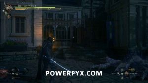In the second enemy wave, you’ll have to fight a Dragoon Lancer as a miniboss. These ones only use the base Jump and Double Jump attack, so shouldn’t be tough to deal with. Once they’re defeated continue through the rubble to the next area.