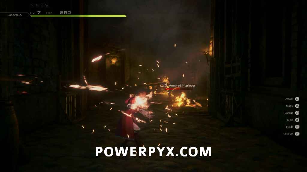 In this main quest, you will be playing as Joshua for a short period. Follow Wade through the castle until you go through a door, and you’ll have your first enemy encounter. Joshua doesn’t have the same maneuverability as Clive, but his magic is much strong, so you can just use the