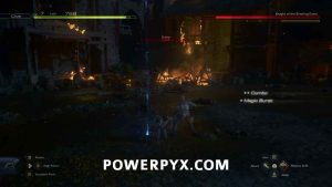 You’ll have another group of Imperials to deal with outside, this time with a couple of casters as well. Try to focus the casters first so you don’t have enemies shooting at you, then clean up the other soldiers. Once they’re dealt with, you’ll start the main boss fight for this chapter against Knight of the Blinding Dawn. This fight starts off with a Cinematic Evasion, so make sure to watch out for it when he jumps off the rooftop.