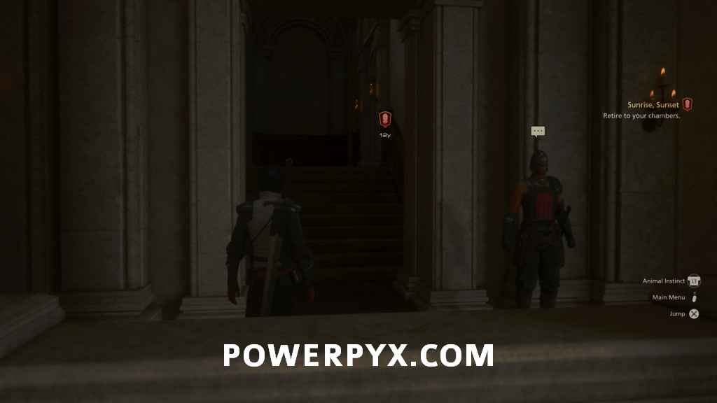 , even in most cutscenes. When you’re ready to continue, make your way to the second floor with the stairs on either side of the throne and enter Clive’s chambers.