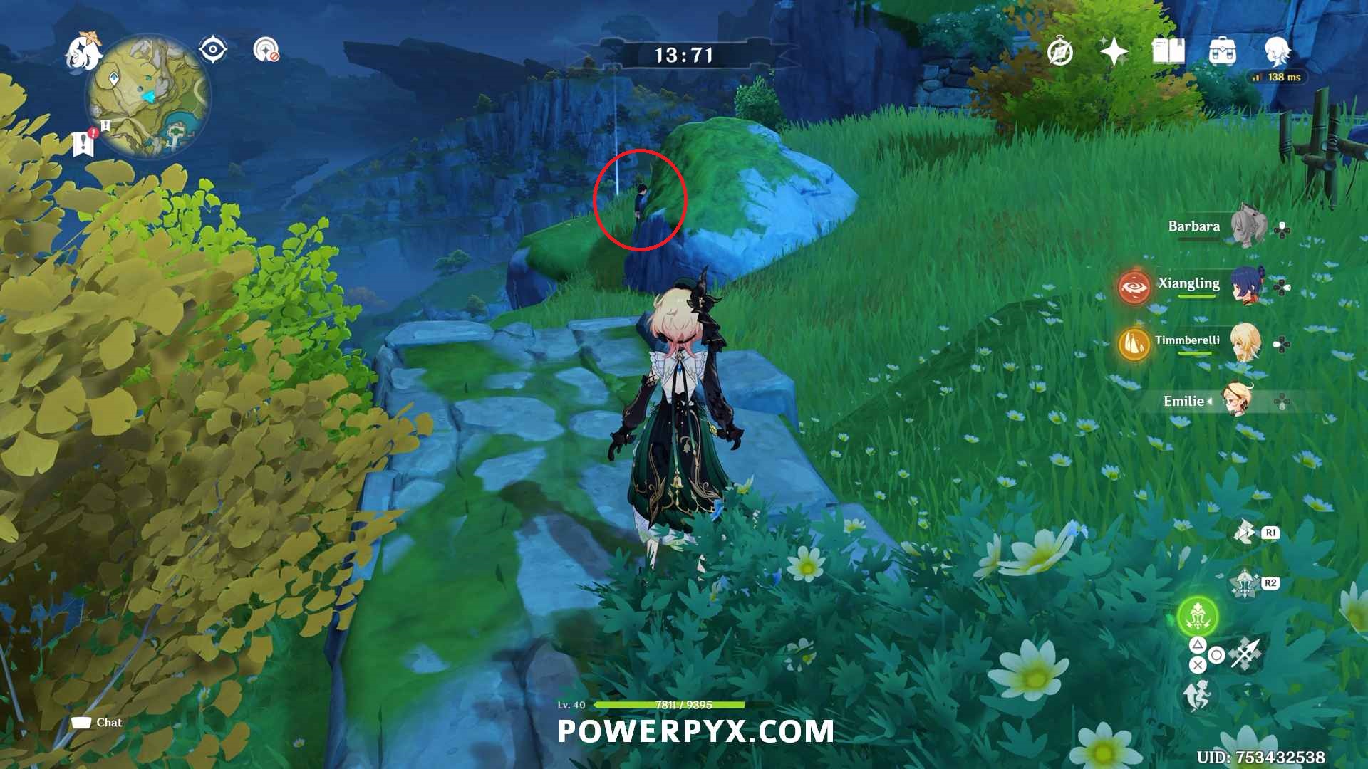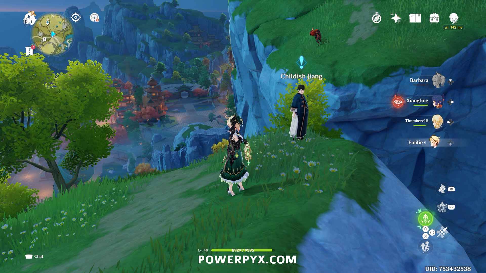When you gain control, run straight ahead and climb up the short rock face. Then, turn slightly left to the rock and find Childish Jiang behind it.