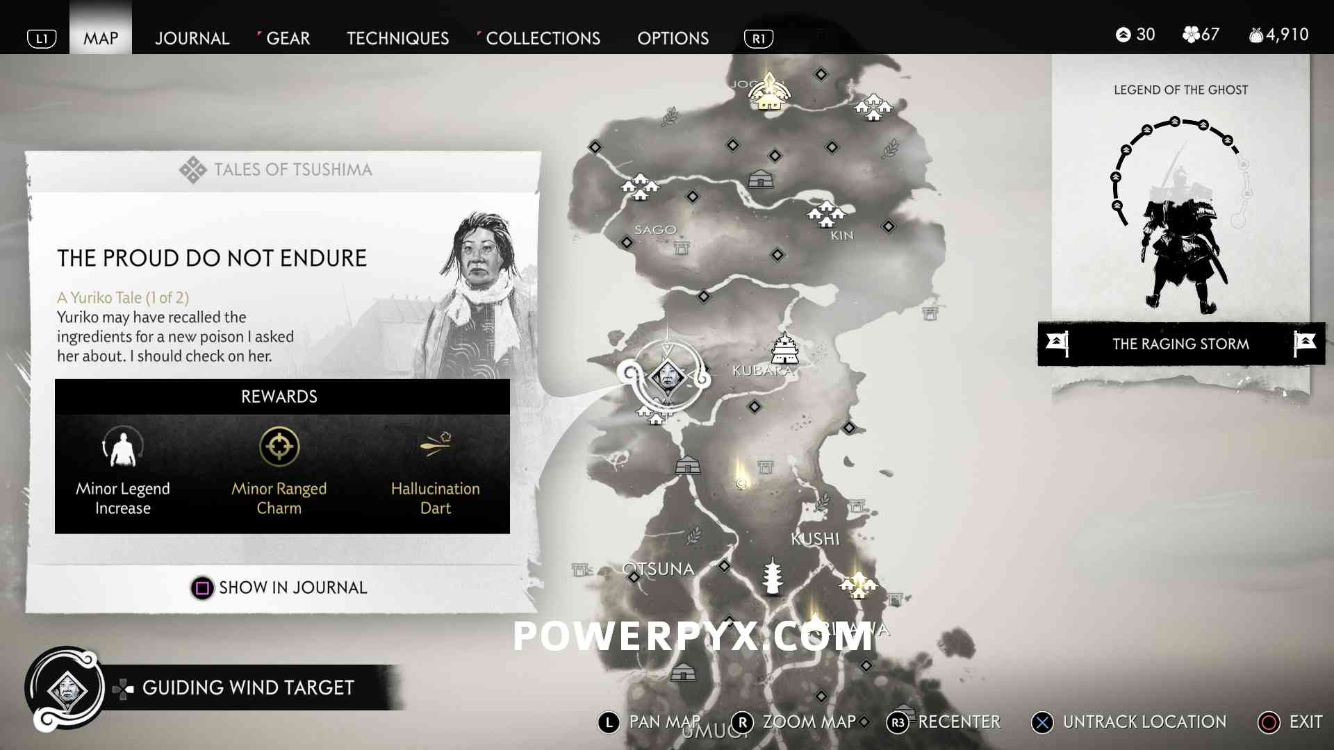 To see which Side Tales you’ve completed, press the Options-Button > Journal > Tales of Tsushima. Then you can compare with the list here to cross-check what you’re missing. You can also see Mythic Tales under Journal > Mythic Tales.