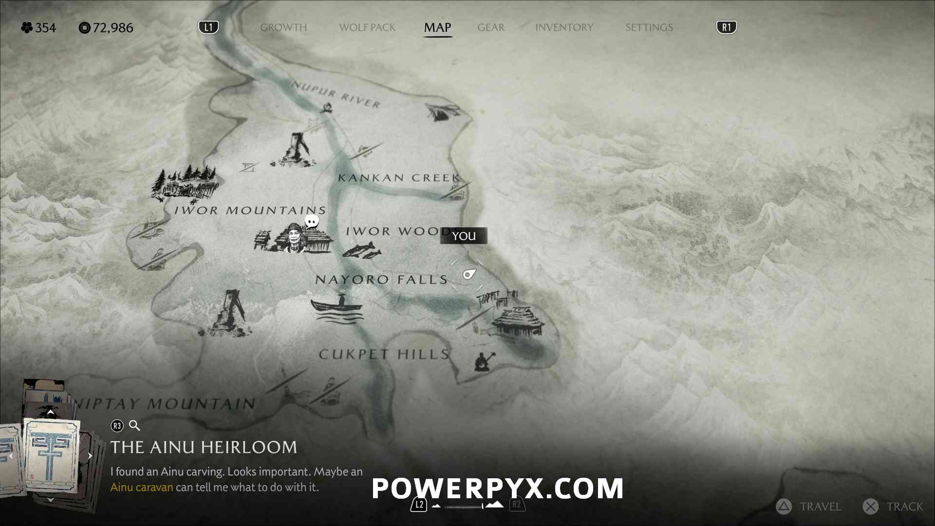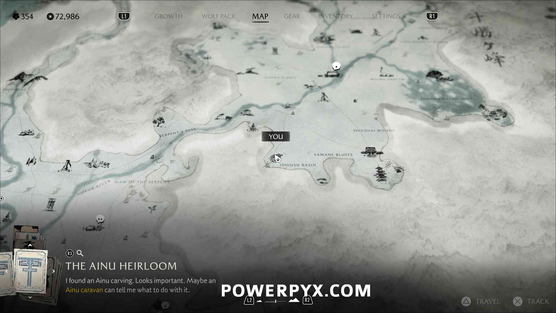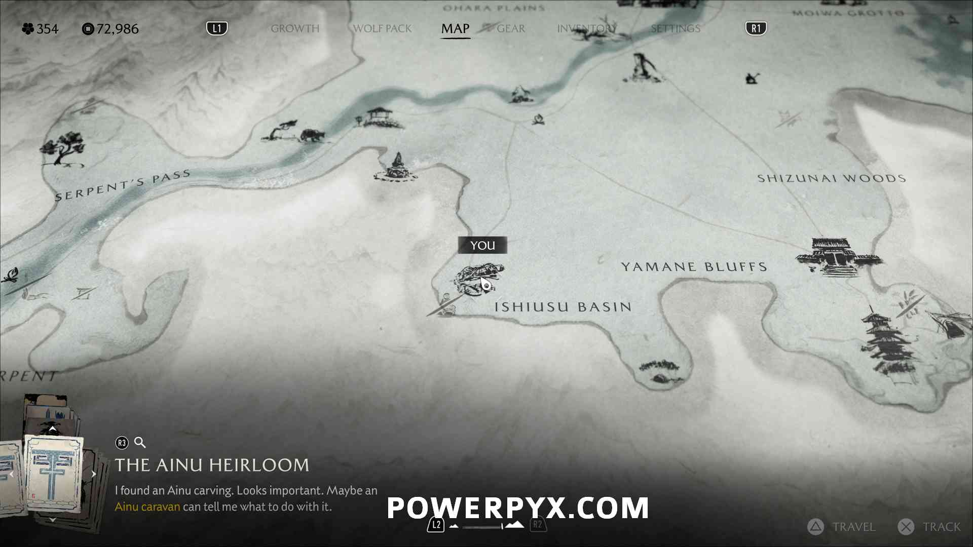 Ainu Item #22 – On the cliff on top of a mountain, where the “ru” of “Sakuru Woods” is on the map.