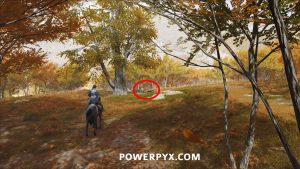 Ainu Item #8 – Slightly north from Saito Recruitment Camp, left of the waterfall under a tree.