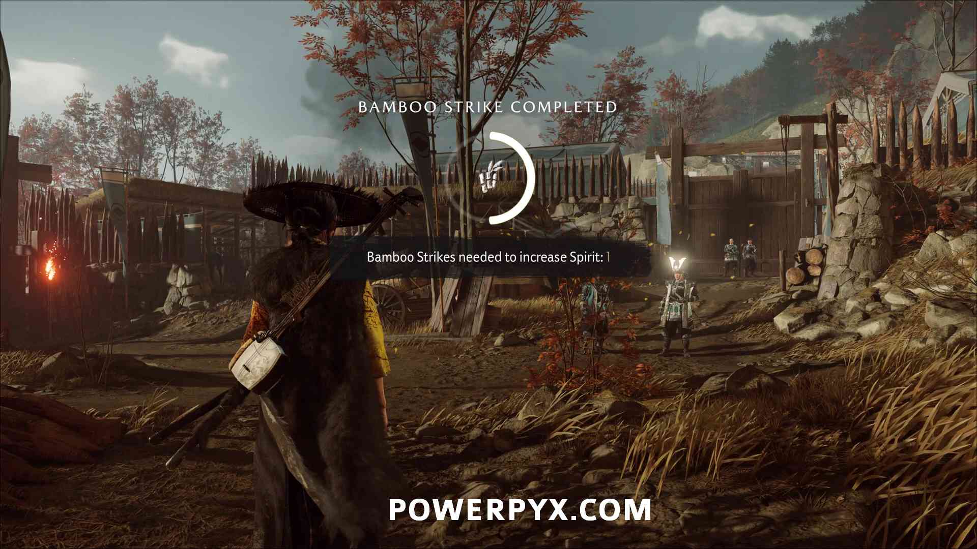 Bamboo Strikes are little QTE button input challenges where you must press buttons in a specific order. They increase your total Spirit, which are the yellow dots in the bottom left of the screen above your healthbar and allow you to use special attacks. 2 Bamboo Strikes come from the story and the remaining 13 are found in the open world. They get marked when going near them. 1 Bamboo Strike icon is a little bit hidden on the map, in Tokachi Range it’s overlapped by the Huranui’s Rest Inn icon. There’s also an unmarked Bamboo Strike at your home.
