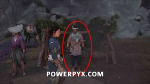 Go to Stone Jaw Coast, north of Ishikari Castle. On the map where the “s” of “Coast” is, you will find a camp. Look in the sky to see smoke coming from the campfire to locate it easily. Talk to the camp leader who stands at the top of the camp, a man in pink robes. Afterward everyone in the camp claims to be Hachibee. Walk to the different groups in the camp and play the shamisen near them (swipe Touchpad left and play Atsu’s song). Do this to all groups and the real Hachibee will reveal himself because he hates shamisen music. Defeat all the enemies. You can loot the bodies after for his straw hat.