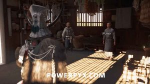 Go to the Huranui’s Rest Inn and talk to the guy wearing a white robe inside the inn. He’s in the smaller side room with another masked guy who has a spear on his back.