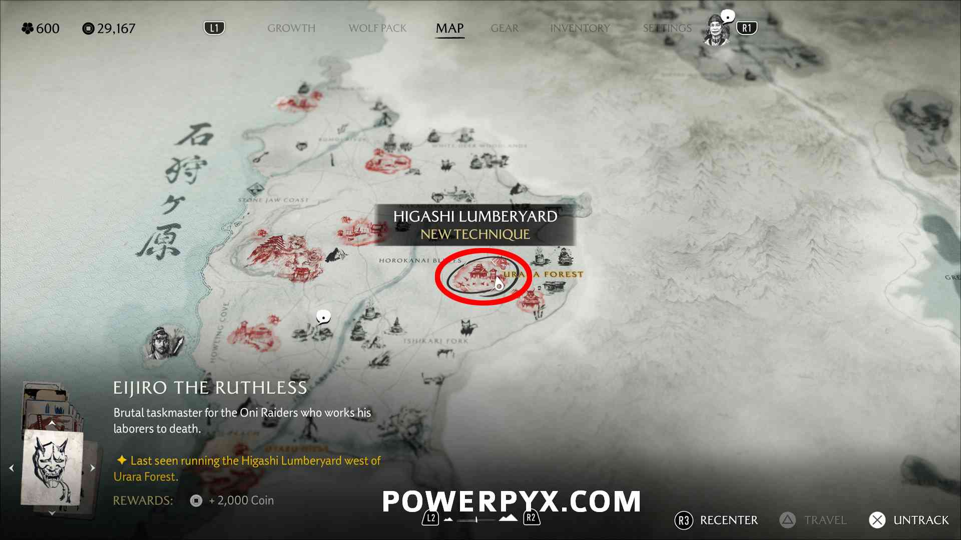 Eijiro the Ruthless Bounty Location: Ishikari Plain > Urara Forest > Higashi Lumberyard