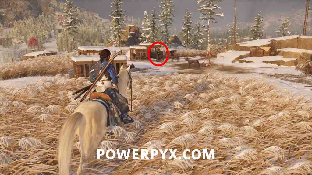 This target is found in the snowy field halfway between Red Crane Inn & Contested Farm. From Red Crane Inn, head north-west through the middle of the field and you’ll see a place with cages. There are dogs and a single human enemy walking where the cages are. Kill the human, he’s the bounty. From where it shows “Teshio River” on the map, it’s straight down from the “h” on the map. You can also find the bounty there right away without accepting the bounty.
