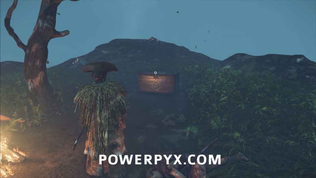 Once the enemies are defeated, open the chest by the campfire where the shooter was.