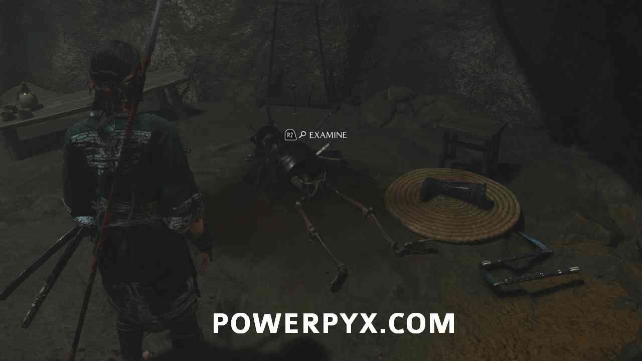 After killing the ronin, interact with the scroll on the bench and the skeleton on the ground in front of the bench.