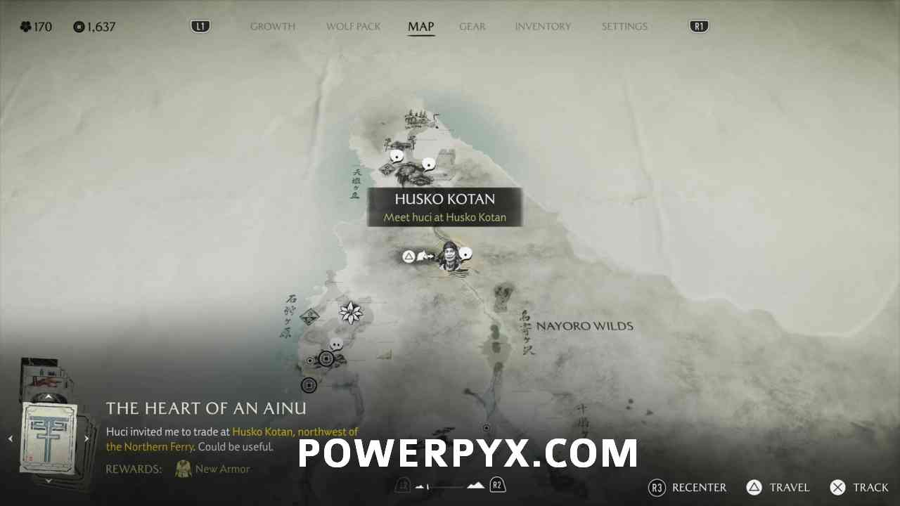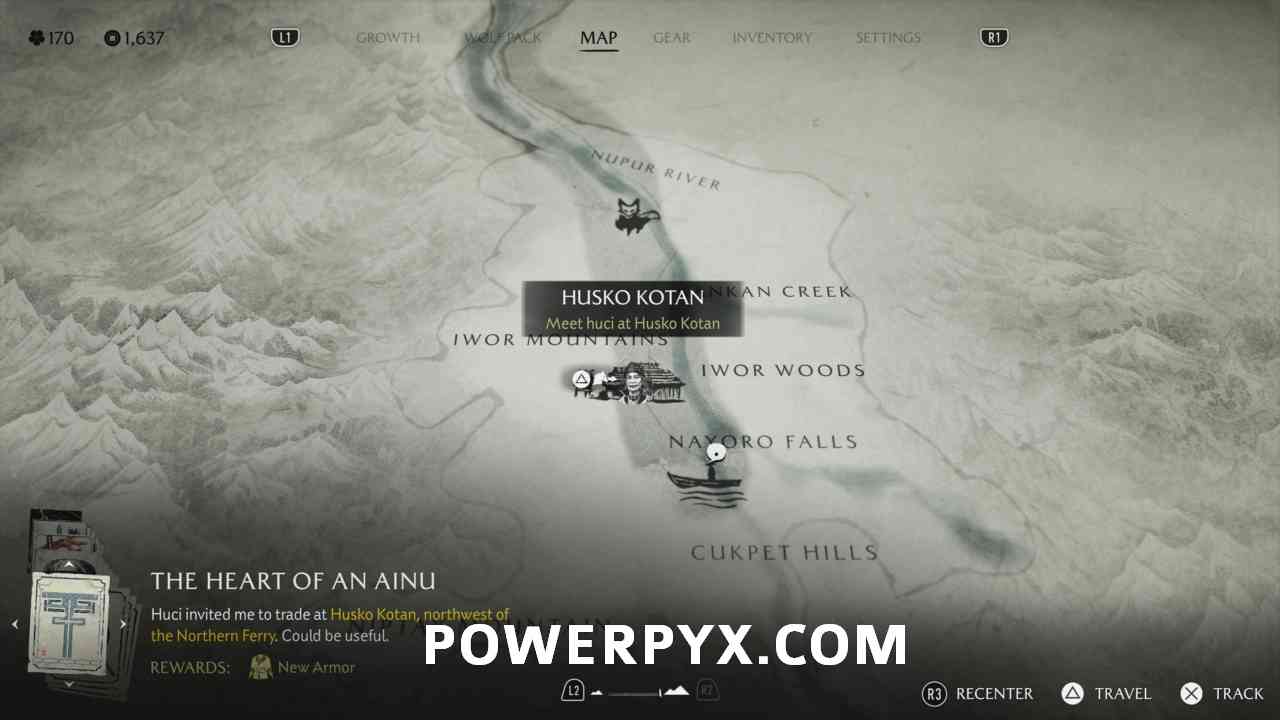 - Quest Info: Huci invited me to trade at Husko Kotan, northwest of the Nothern Ferry. Could be useful.