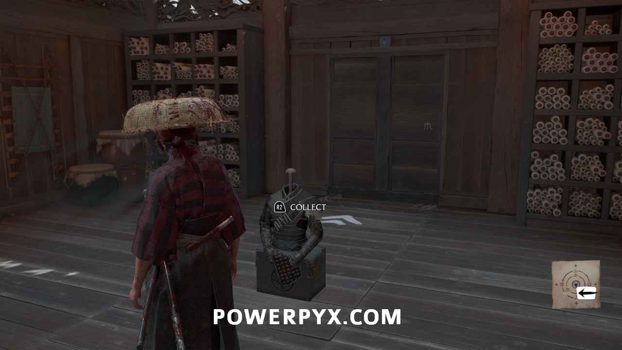In the middle of the upper building is a set of gear, the Nine Tail Armor, Nine Tail Acolyte Mask, and Nine Tail Acolyte Headband. Interact with the armor display to equip them automatically.