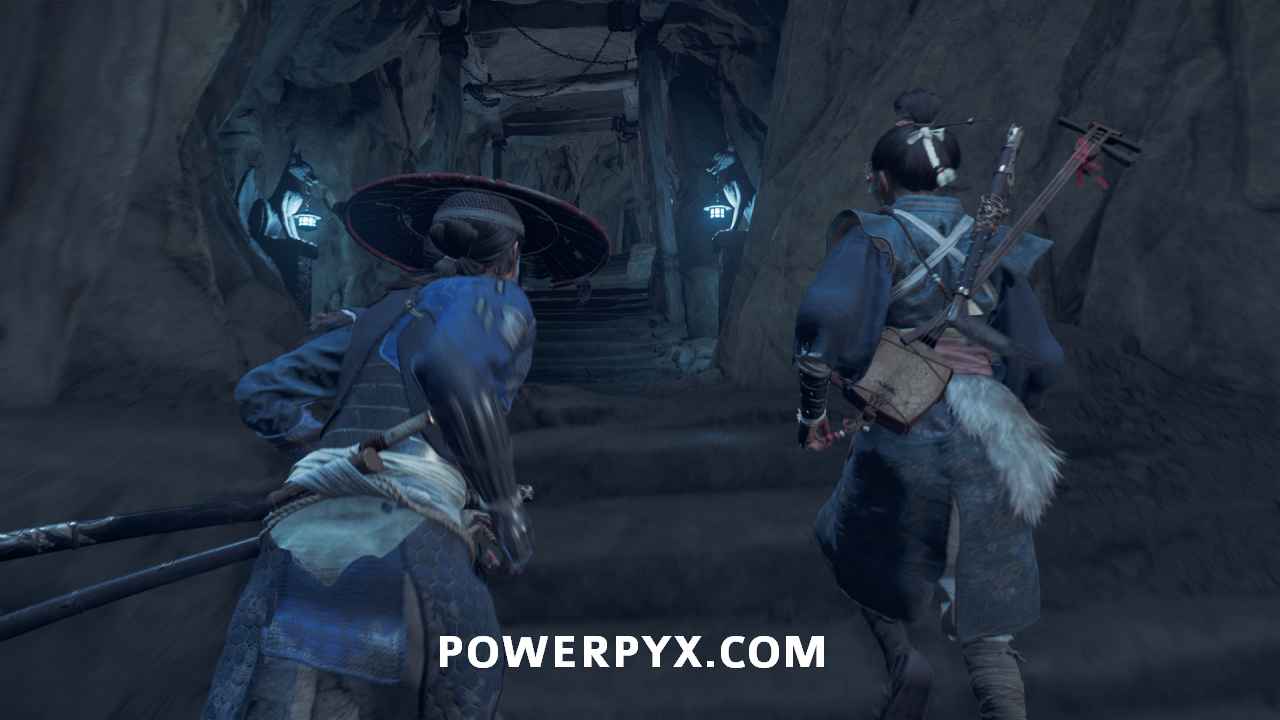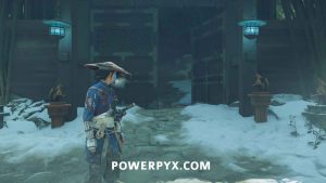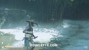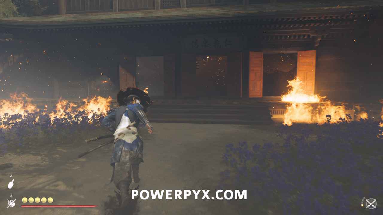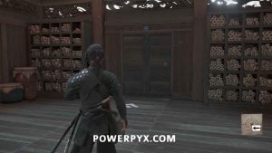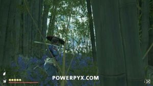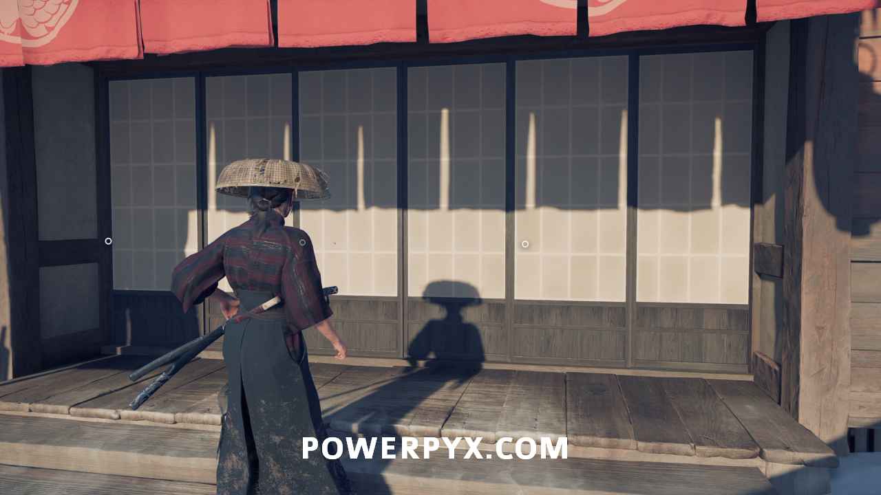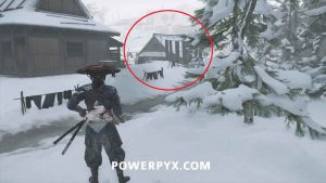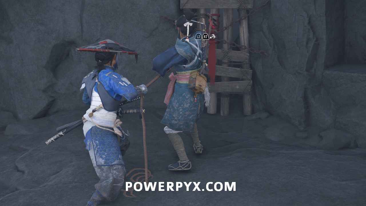 Interact with the bamboo wall. Then, yank it down with Oyuki’s help. Head inside.