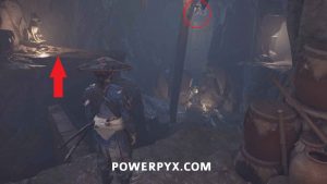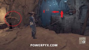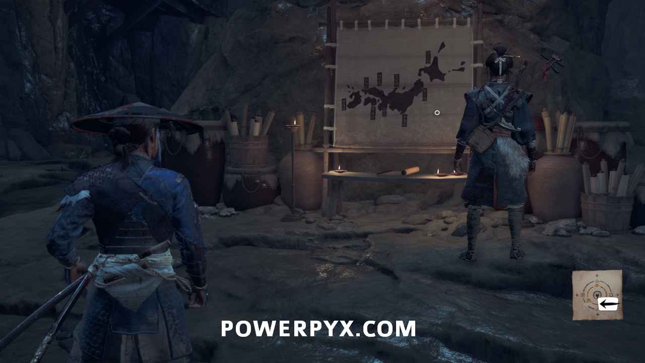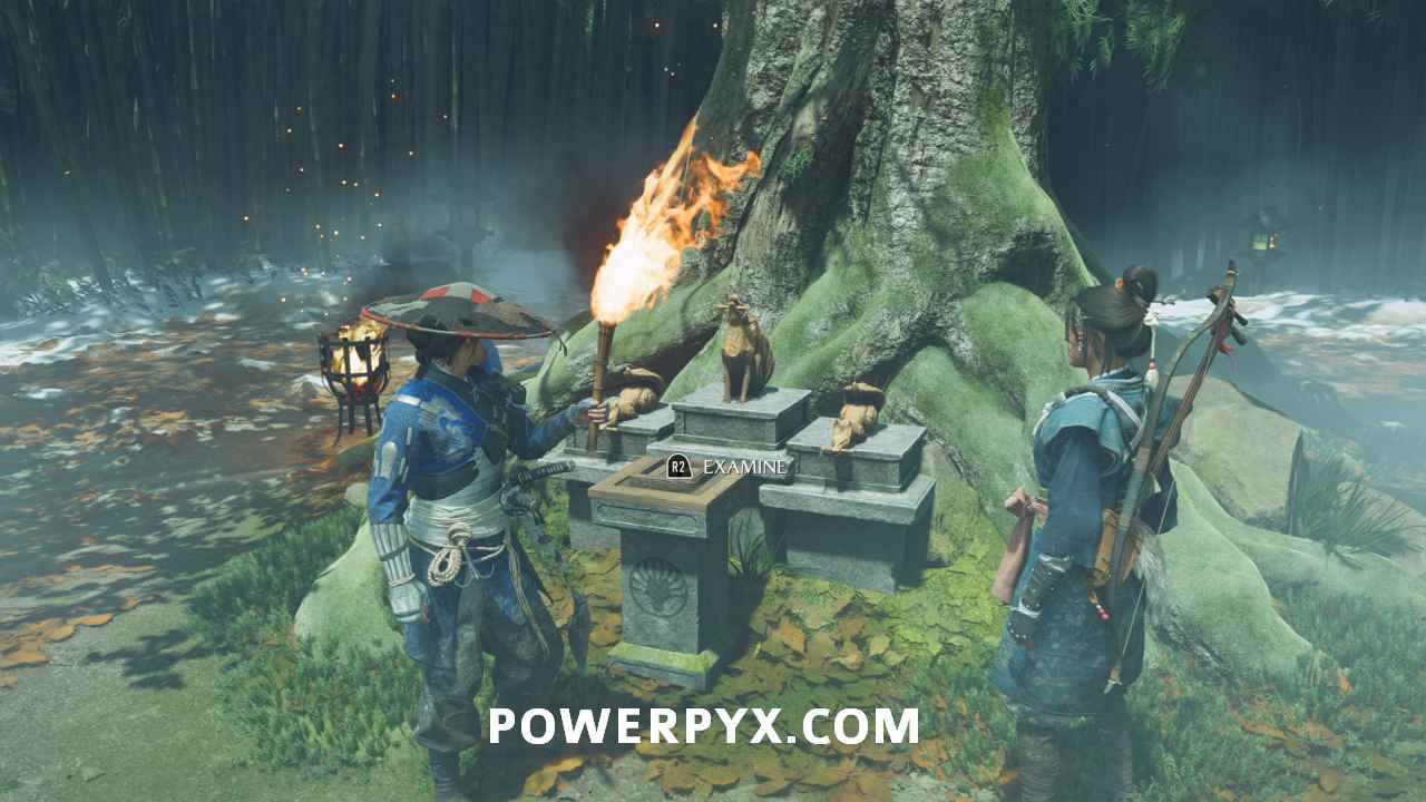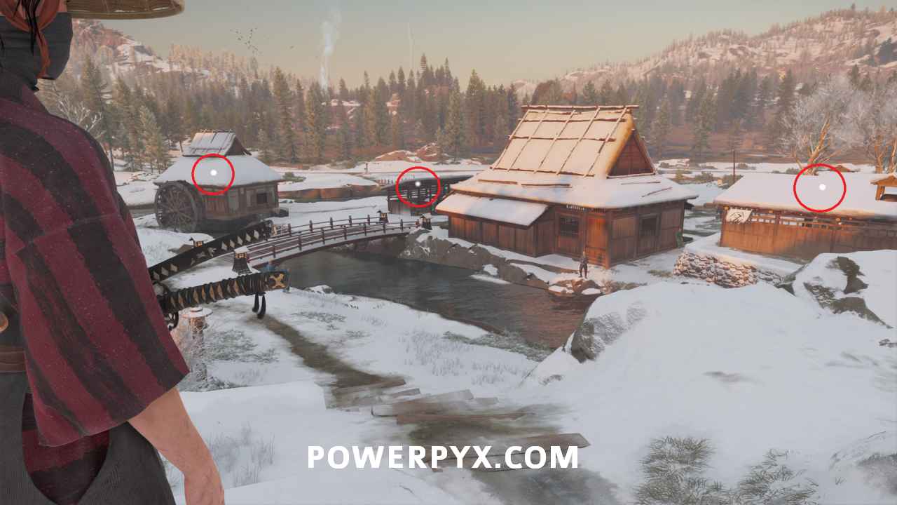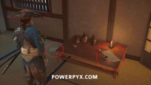 Use your spyglass and interact with the two spots in front of you using R2. To save some time later, interact with the mountain spot on the right to make available the Sensei Tale “The Way of the Kusarigama“.