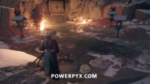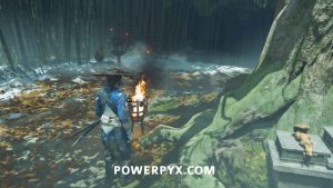 Then turn around and light the incense burner on the other side of the clearing, Oyuki leads you there.