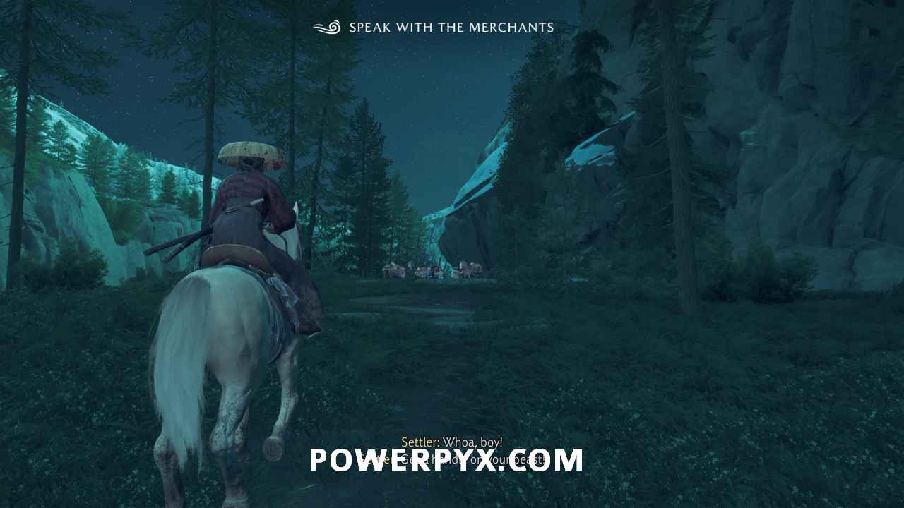 When you find three merchants struggling with their horses, interact with them.