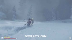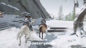 When you regain control, follow your horse through the snow.