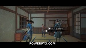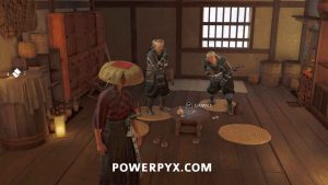 You can sit and have some sake while you listen to gossip. However, you end up gambling with Zeni Hajiki with the two Matsumae right in front of you when you get control.