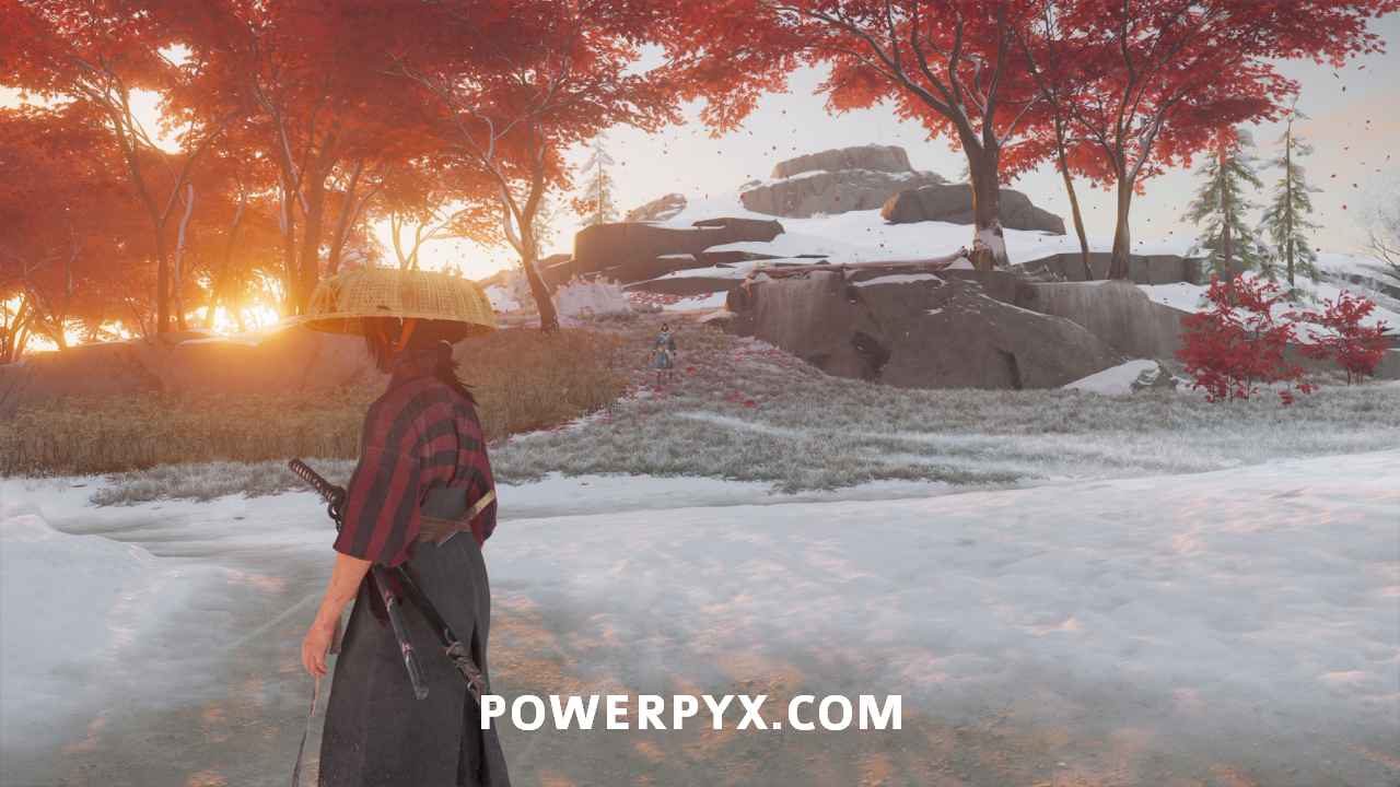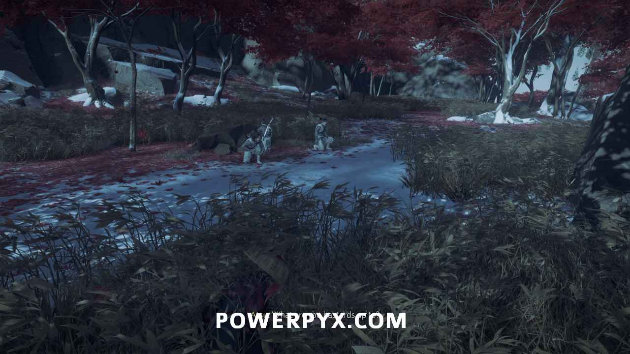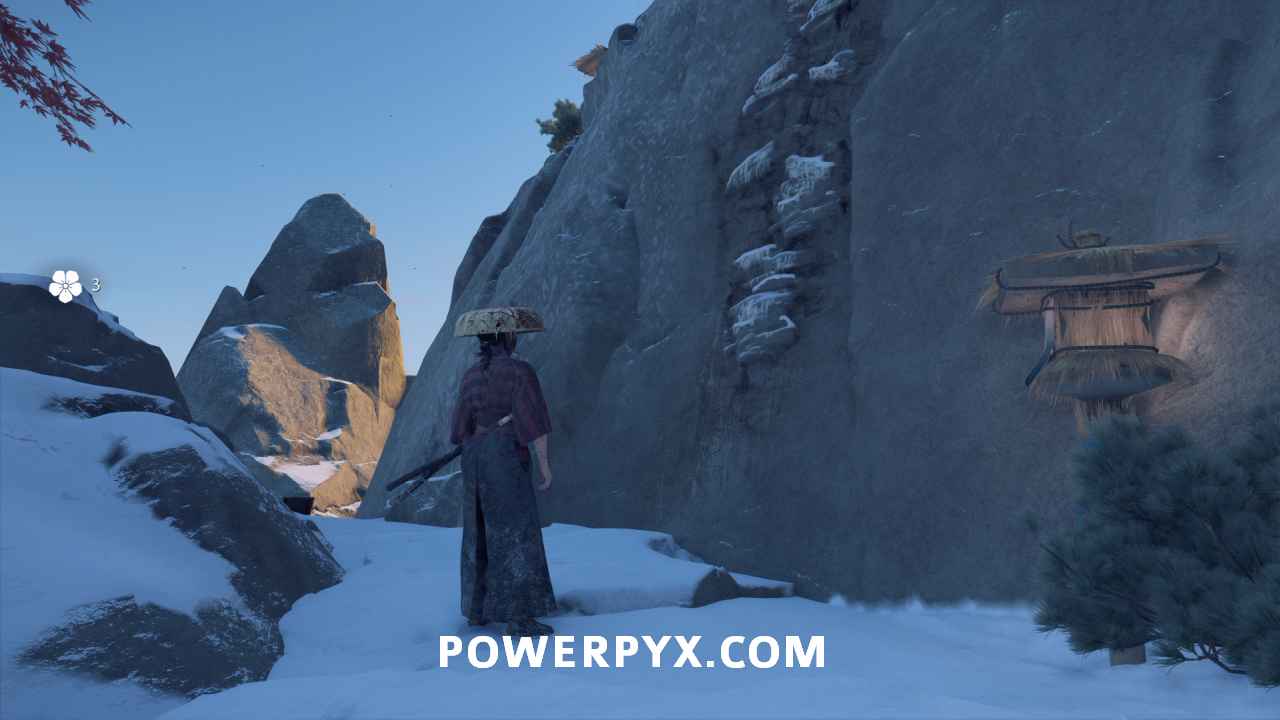 Turn to your right and climb up the ridge with red trees on it. Oyuki leads you to a spot just behind a fallen tree.