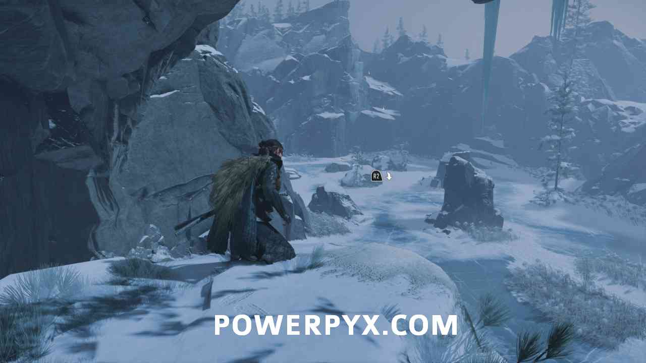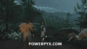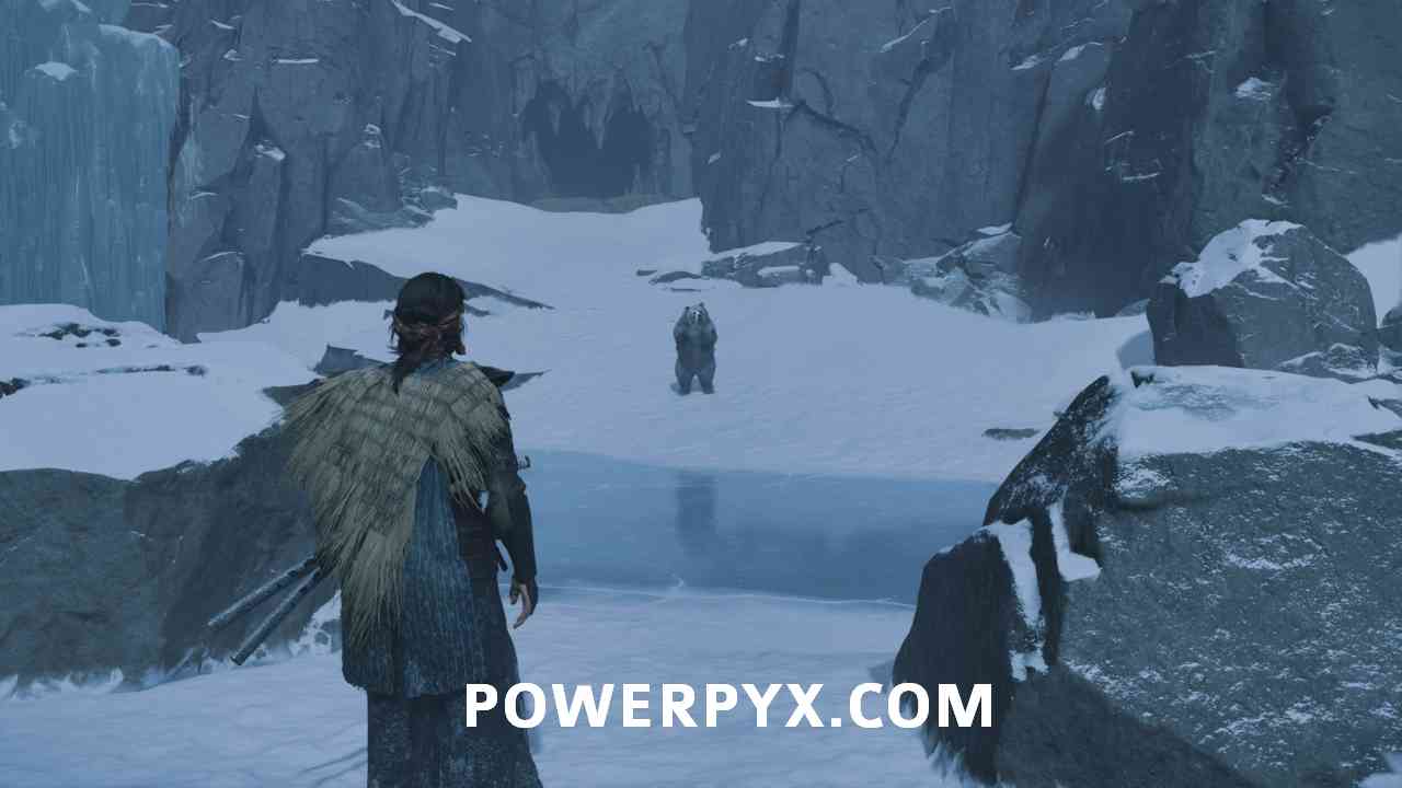 After the interaction with the Ainu, move forward and get down to the next area. Here you will find the bear again. You can run straight to the other side and climb up the mountain to safety.