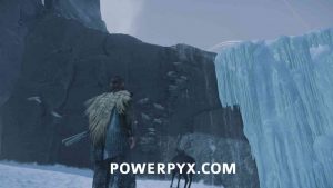 Drop down to the next area where the bear already waits. You can run across the area to find a cliff to climb on. There will be a torch in front of it.