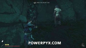 Up there, turn right again, and you will find the bear cub’s mom. Next to her, pull out the rocks to free the cub.