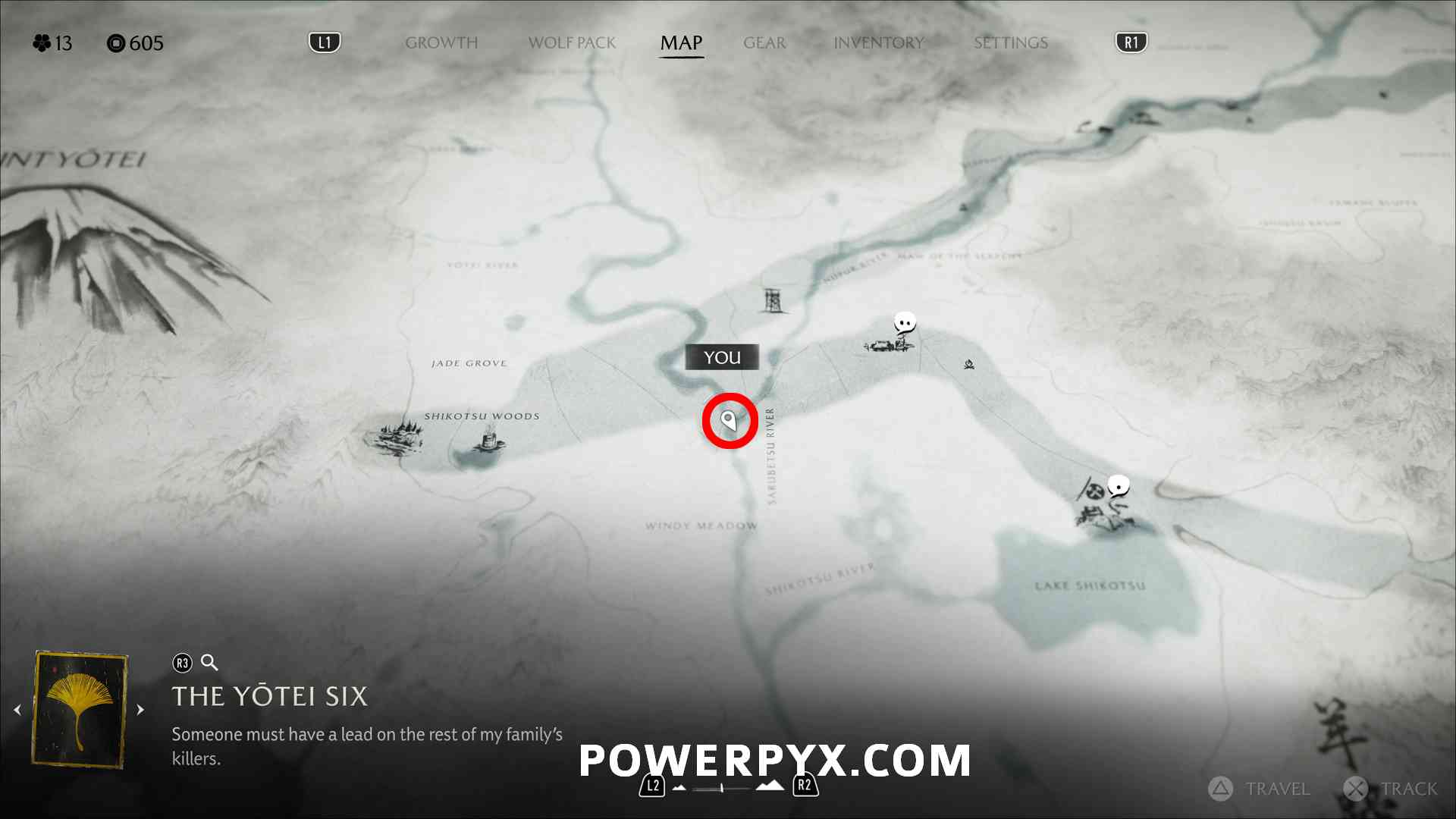 There won’t be an objective marker on the map for this quest. This can be confusing. What you have to do is kill enemies across Yotei Grasslands (starting region) until one gives you info on the Yotei Six.