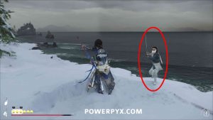 First, you must do Sensei Tale: The Way of the Yari in Ishikari Plain to unlock the Yari weapon (spear). As part of this tale you automatically spear 4 fish, leaving only 1 more to do for the trophy. After the tale you must find a fish that jumps out of water. These are in shallow water and will be indicated by a white circle in the water. While the fish jumps out of the water, have the Yari weapon equipped and press For example, you can find fish in Tokachi Range > in the north-west in the water near Amber Respite Shrine entrance. If there are no fish, fast travel away and come back until one spawns, or try sleeping at camp to advance time. |