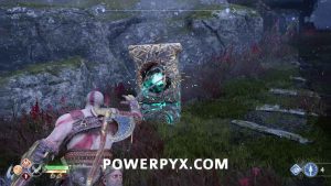 Use the Konunsgard Entry Stone that Brok gave you to open the gate leading to the quest marker. Once you reach Konunsgard, talk to Sindri at his shop. Then follow the waypoint downhill. There’ll be some poison fog which you can freeze by throwing the axe at it. The enemies in this area are weak to the Blades of Chaos. After the poison fog you come to a pedestal in front of the stronghold’s main gate. The next objective begins.