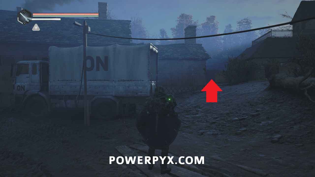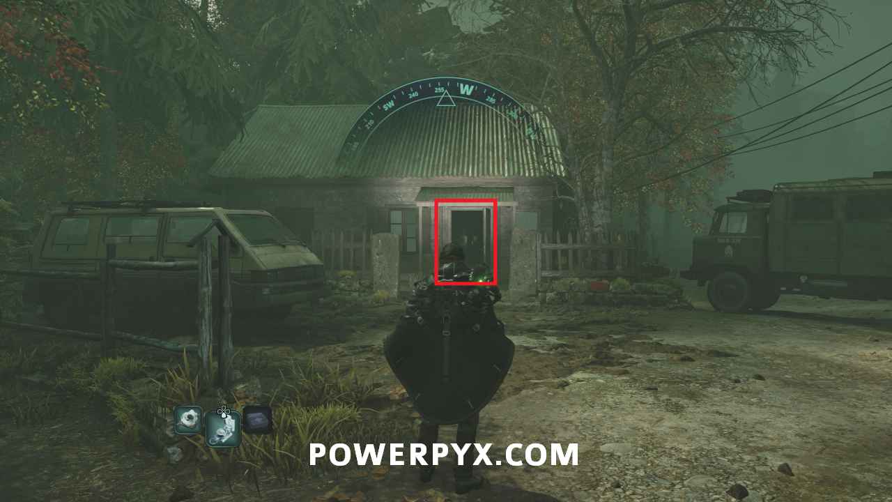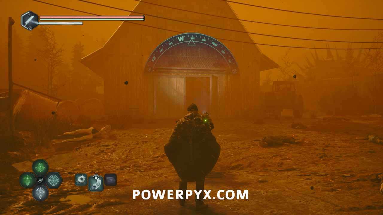 From the APC and follow the road leading southwest until you reach a barn on the left where you can hear crying inside. Go behind the barn and follow the path to the right where you can pick up Key – Antenna off a body that starts this good deed.