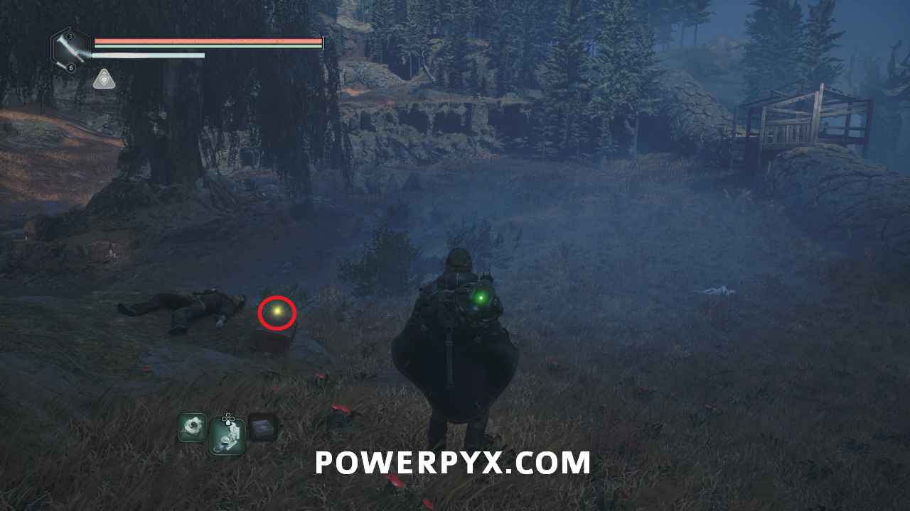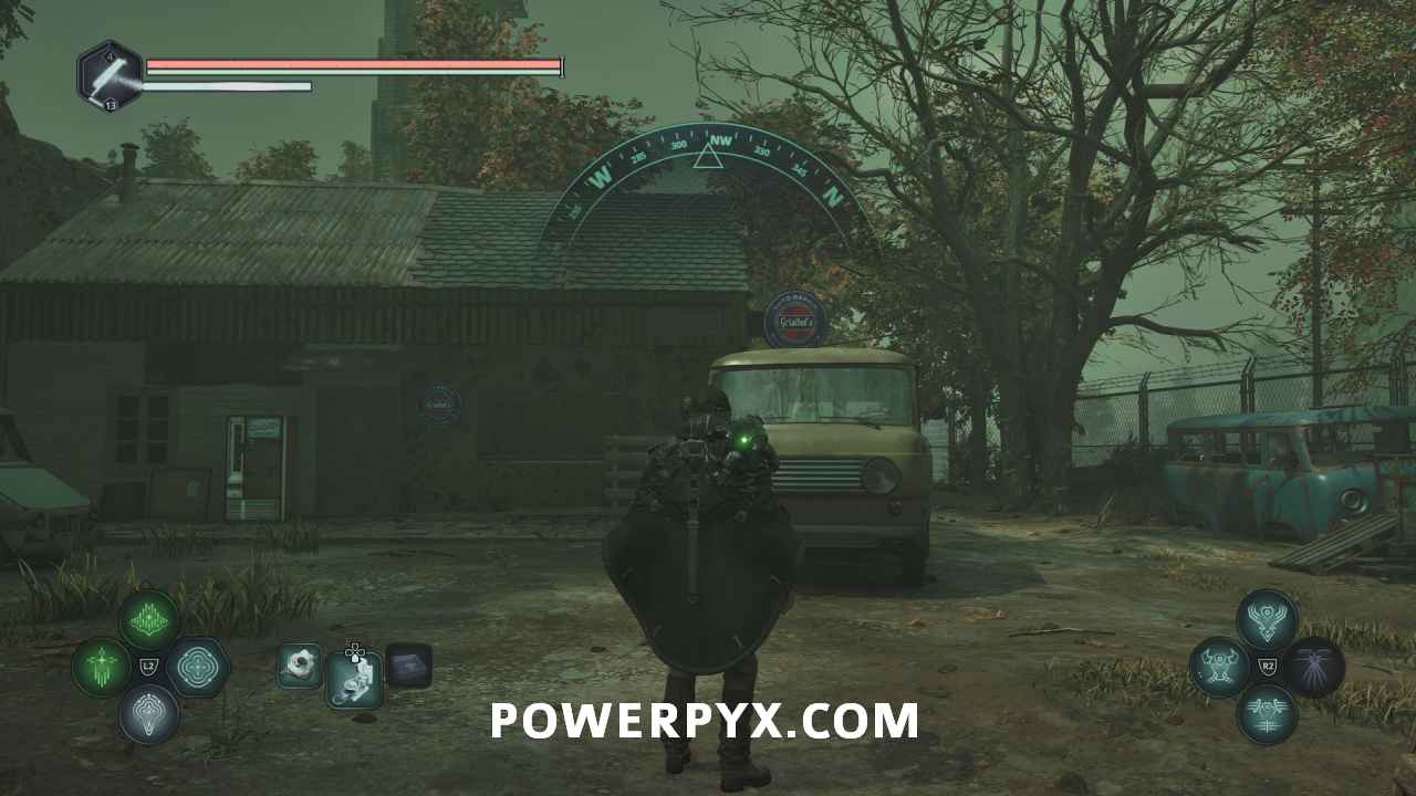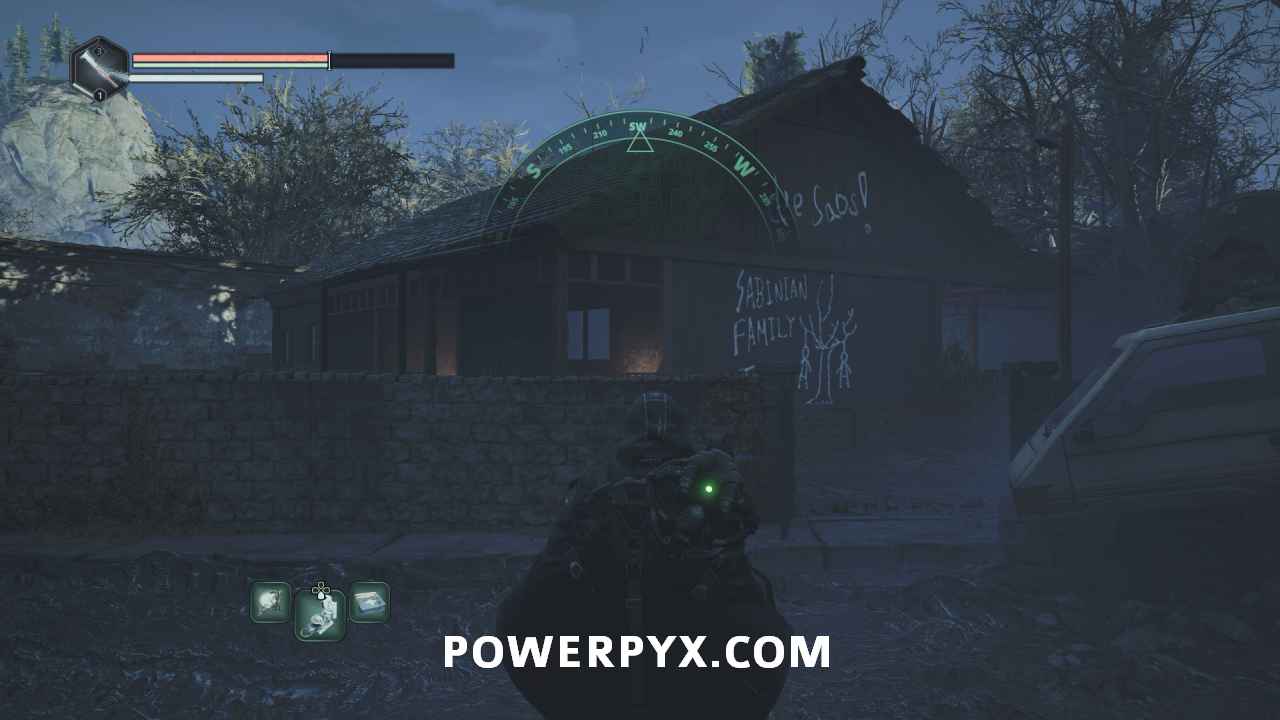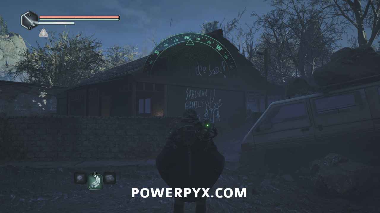 From the APC and follow the road leading southwest until you reach a barn on the left where you can hear crying inside. Go behind the barn and follow the path to the right where you can pick up Key – Antenna off a body that starts this good deed.